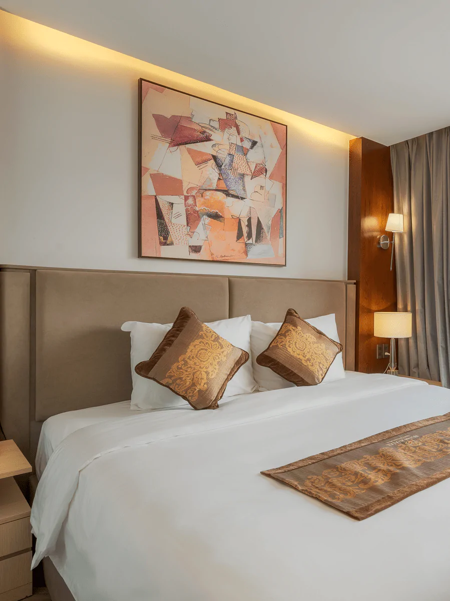Ấm cúng và Sang trọng Với thiết kế tinh tế và sang trọng căn phòng trang bị một giường lớn hoặc hai giường đôi với kiến trúc Âu pha chút cổ điển tao nhã trong tông màu vàng ấm...